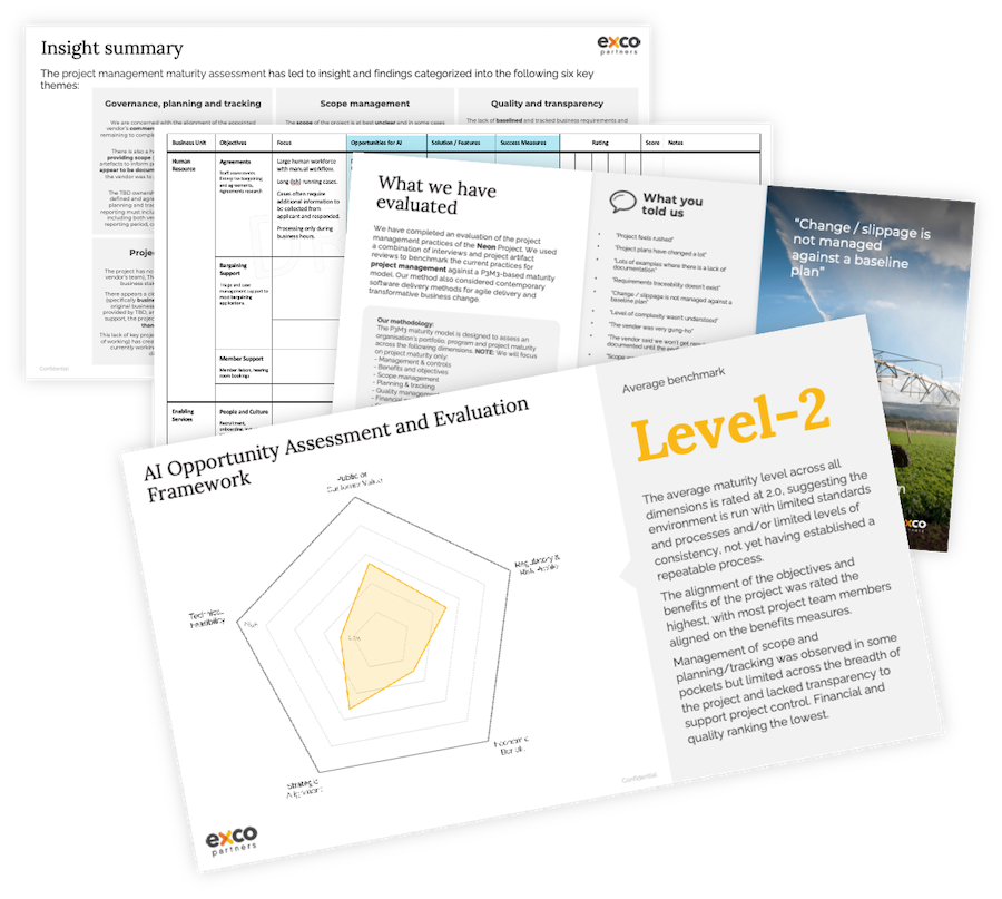 Artificial Intelligence presents a significant opportunity - but real value is unlocked only when use cases are clearly aligned to strategy, risk is understood, and investment is prioritised with discipline. Move AI initiatives are solutions looking for a problem and thus do not deliver real benefit. Our AI Opportunity Assessment & Evaluation provides a structured, executive-level framework to identify, evaluate and prioritise AI initiatives across your organisation. Move beyond isolated proof-of-concepts and ad hoc experimentation.
